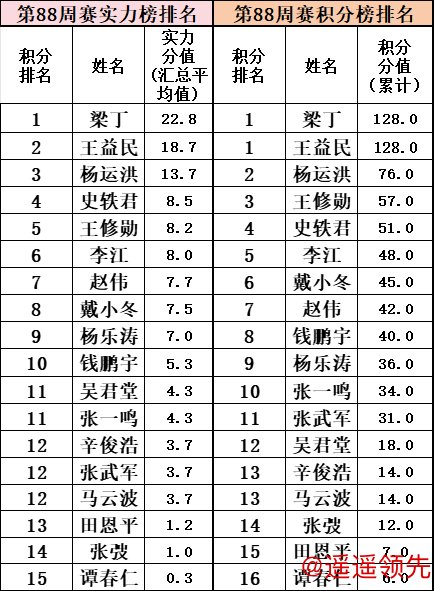 第四轮晋级选手展开最终PK,按相同积分规则核算总排名,排出本次周赛前三名。